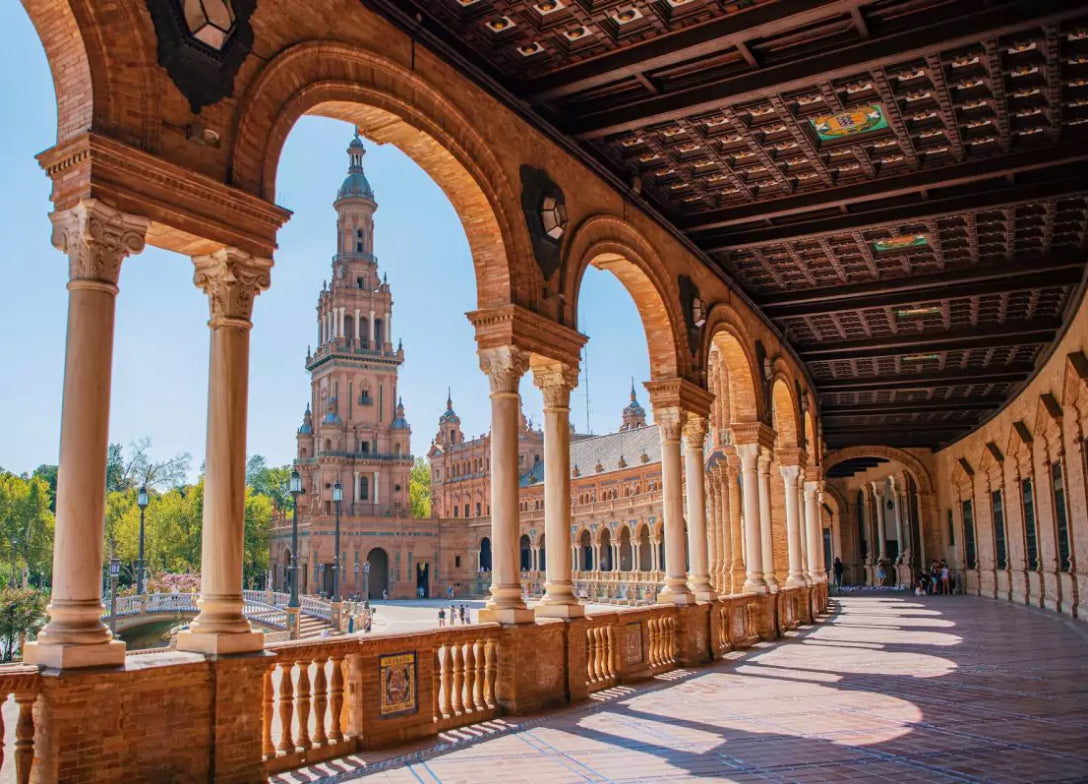 De manhã, visita à impressionante Praça de Espanha, um dos cartões-postais de Sevilha.